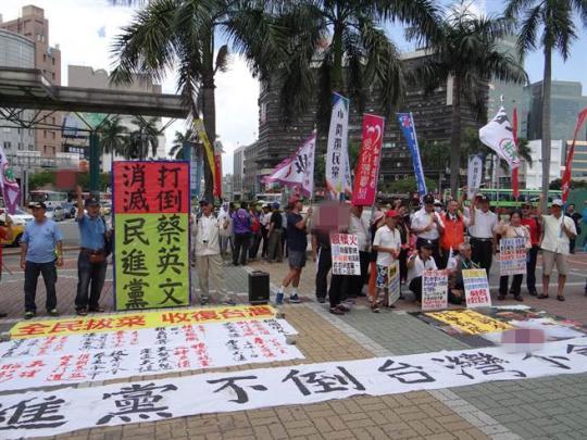 “全民拔菜总部”1日上午誓师授旗,号召从台南出发,各县市响应“全民拔菜、收复台湾”行动。(图片来源:台湾《中时电子报》) 中国台湾网7月2日讯 据台湾“东森新闻云”报道,岛内军公教年金改革上路,反年改团体将7月1日定调为“国难日”,扬言要开始启动全台22县市的革命。“如影随形爱台湾联盟”、“中间选民党”党主席黄正忠表示,历经552天的陈抗之后,他们将发动“公民不服从运动”,呼吁军公教警消劳一起站出来,用选票革命。 军公教年金改革上路后,反年改团体扬言“如影随形”,要用“恶作剧”游击的方式,抗议蔡英文。甚至还一度传出,蔡英文1日下午原本将视察台中绿川整治工程,但由于陈抗因素临时取消。 除了反年改中部的“如影随形”抗议外,部分退军团体与“全台拔菜总部”也于台南举办誓师大会。众人在现场高喊,“蔡英文下台”“民进党不倒,台湾人民不会好”等口号。 黄正忠表示,经历552天的陈抗之后,他们将发动“公民不服从”运动,呼吁军公教警消劳一起站出来,用选票革命。时间就从7月1日开始,开始启动全台22县市的革命。 “拔菜总司令”卢朝财说,从台南誓师出发,是因为郑成功在台南登陆,学习开台圣王的精神,收复台湾,民众必须做台湾的真正主人,主导政策及走向,号召全民于11月24日用选票来教训独裁政党。(中国台湾网 李宁) |