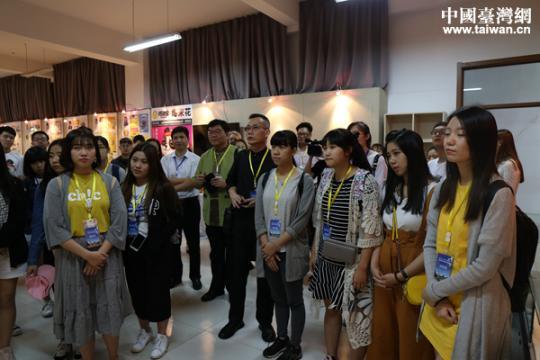 参访交流团听取《一人一品》作品展讲解。(中国台湾网袁楚摄)