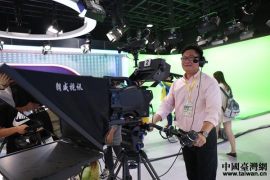 台湾大学生在山西传媒学院视频演播室进行体验。(中国台湾网袁楚摄)