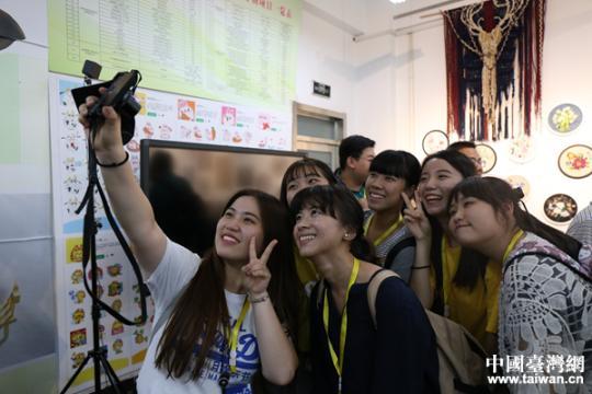 台湾大学生参访过程中不忘玩自拍。(中国台湾网袁楚摄)