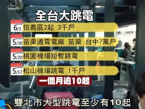据台湾《中国时报》报道,从4月起,包括花莲、高雄、苗栗、台北和新北等地皆频发跳电和停电事故,其中苗栗通霄电厂5月30日发生的输电线路跳脱故障,致使苗栗及台中约7万多户停电。有数据统计,仅五月份,台北和新北地区就跳电了11次! 缺电问题甚嚣尘上,民进党却依旧习惯性“健忘”。日前,台当局“行政院长”赖清德表示,“台湾没有外界担心的缺电问题,以100%的发电量来说,目前仅使用了约94%,发电能力大于使用量,我们还有6%的剩余电量,所以说并非电不够用,而是剩得不够多。”听了“赖院长”的一席话,民众燥热的内心瞬间被浇了个冰凉……