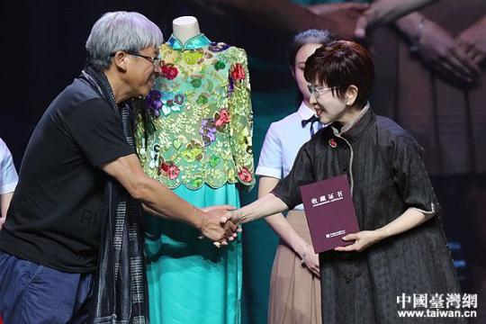 洪秀柱从中国丝绸博物馆馆长赵丰处接过收藏证书。(中国台湾网